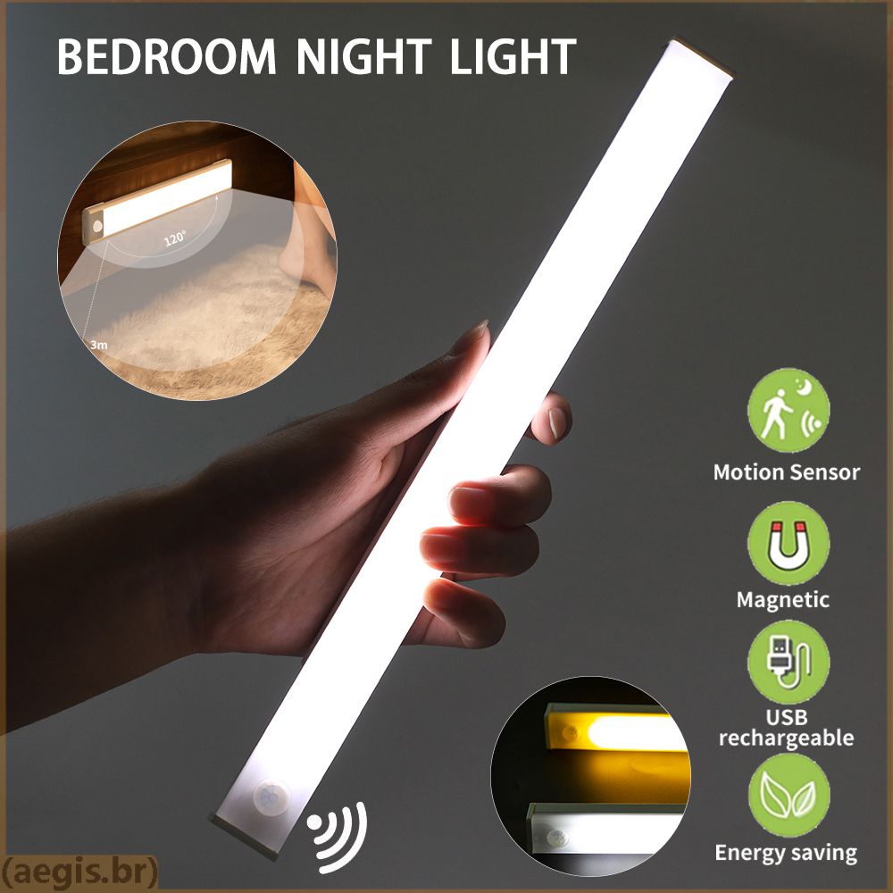 Luminaria Ultra Fina Com 3 Tipo de Luz 40 / 50 / 60CM Recarregavel Led para Armário Lâmpada de Pia Sensor de Movimento Sem Fio Usb Recarregável