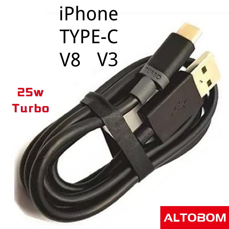 Cabo Carregador 25W Turbo Rápido V8,iPhone,Tipo C, V3 Micro Usb PS3 GPS Celular