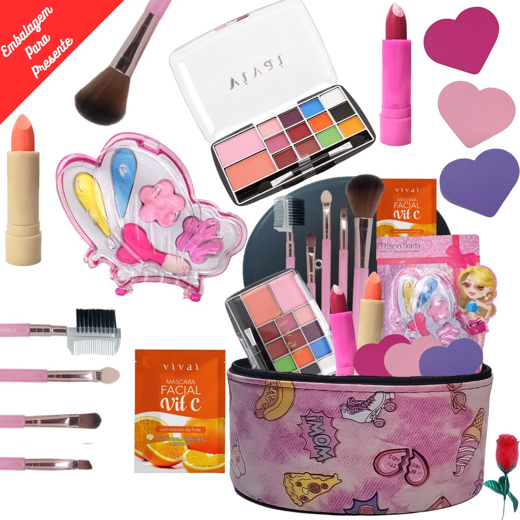 Kit Infantil Criança De Maquiagem Com Meletinha Make Linda
