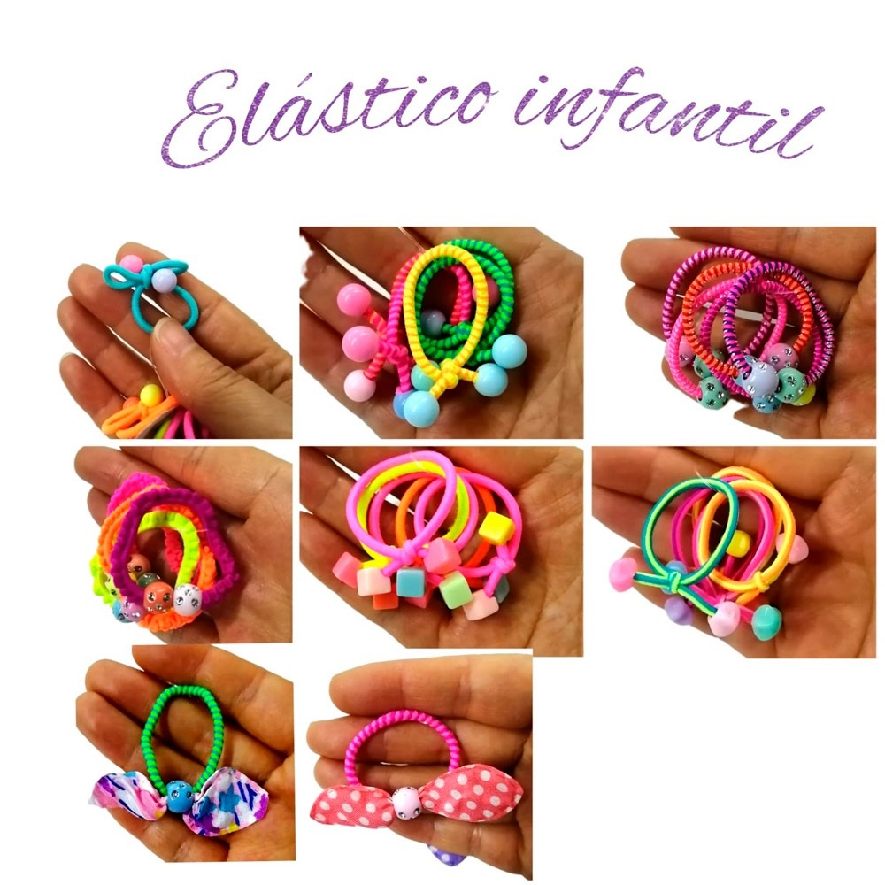 kit 50 Elásticos de Cabelo infantil criança com conta colorido linda