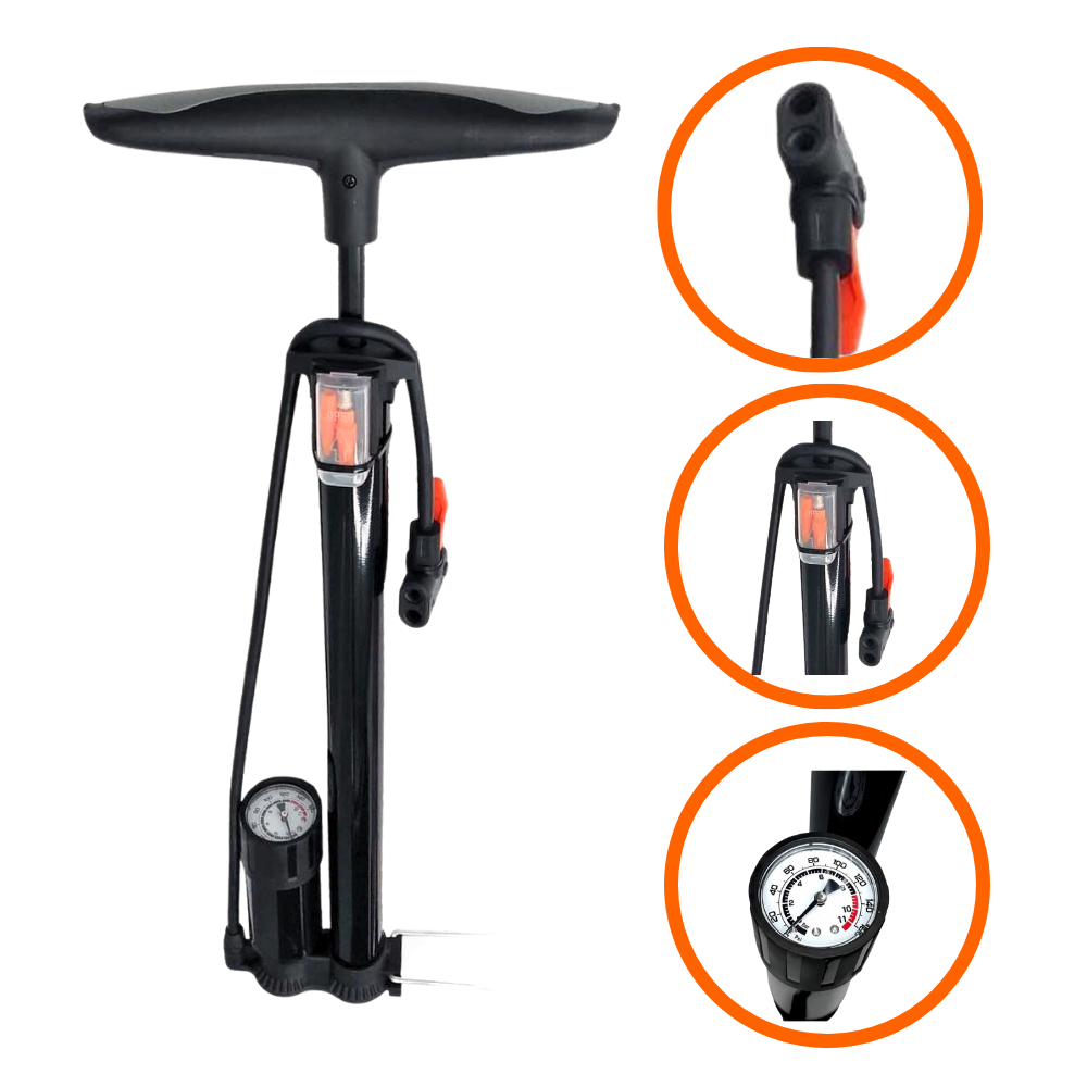 Bomba de Ar Com Manômetro Encher Pneu Bike Moto Carro e Bola
