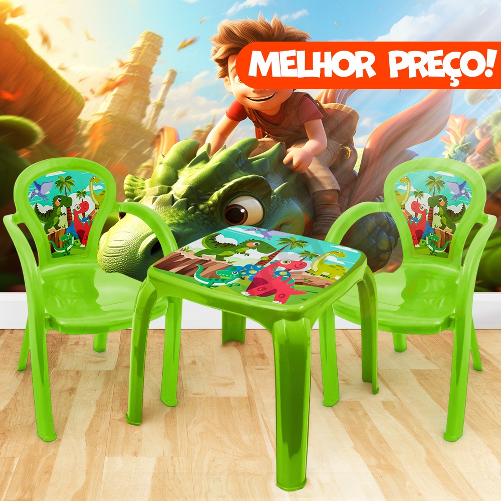Kit Conjunto De Mesa Infantil Com 2 Cadeiras Dobrável Resistente P/ Crianças Até 40Kg Em Aço Cores e Estampas Divertidas