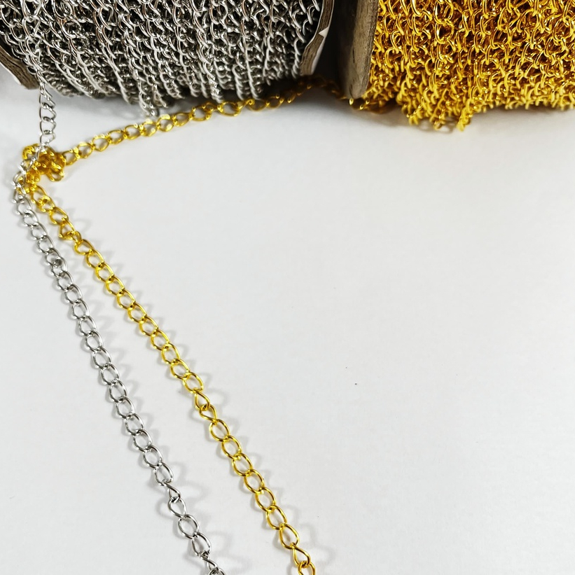 Corrente Grumet Em Ferro 5 Metros Dourado e Prata Chaveiro Artesanato
