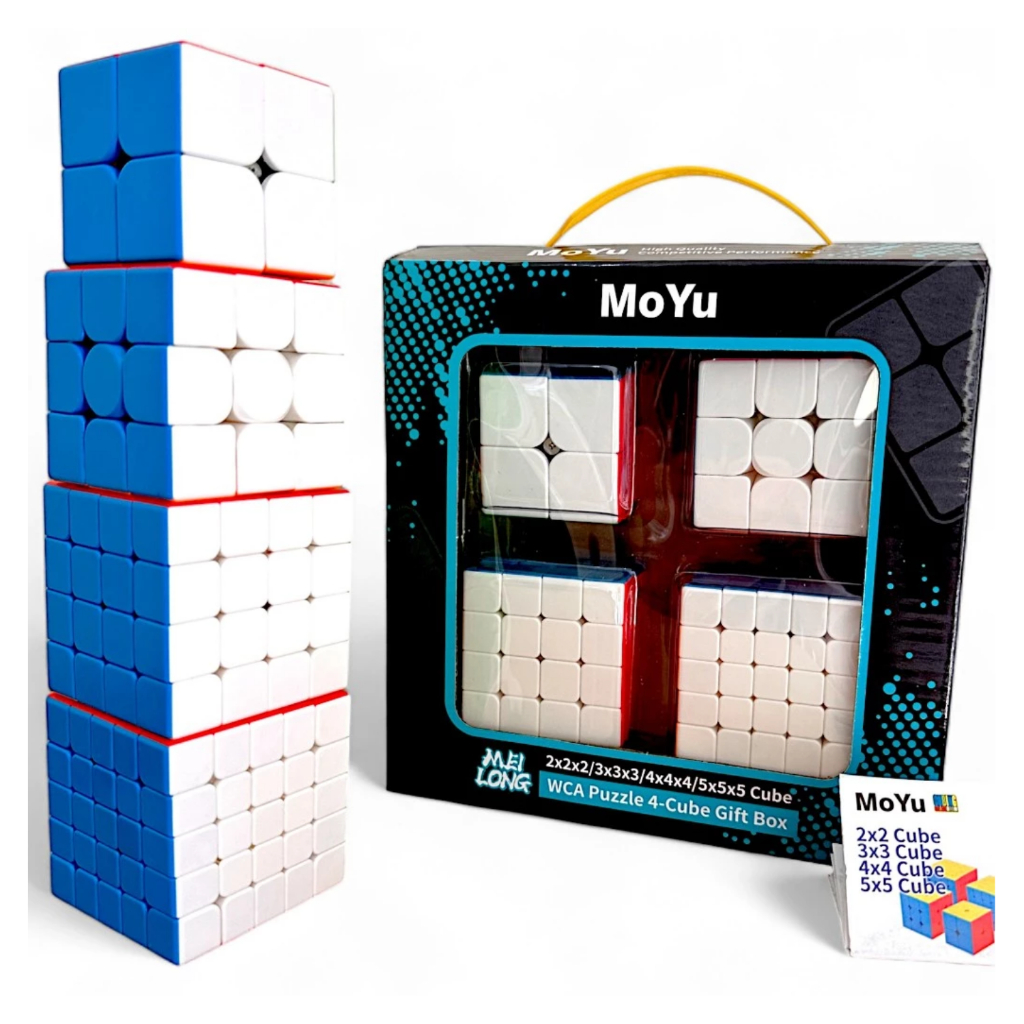 Kit Box Cubo Mágico 4 Unidades 2x2x2 + 3x3x3 + 4x4x4 + 5x5x5 Profissional MoYu