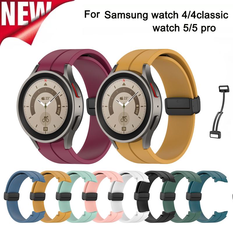 Fivela Magnética De Silicone Dobrável De Para Relógio Samsung Galaxy 4/5 40mm 44mm Pro 45mm/Watch4 Classic 42 46MM Sem Lacunas Pulseira