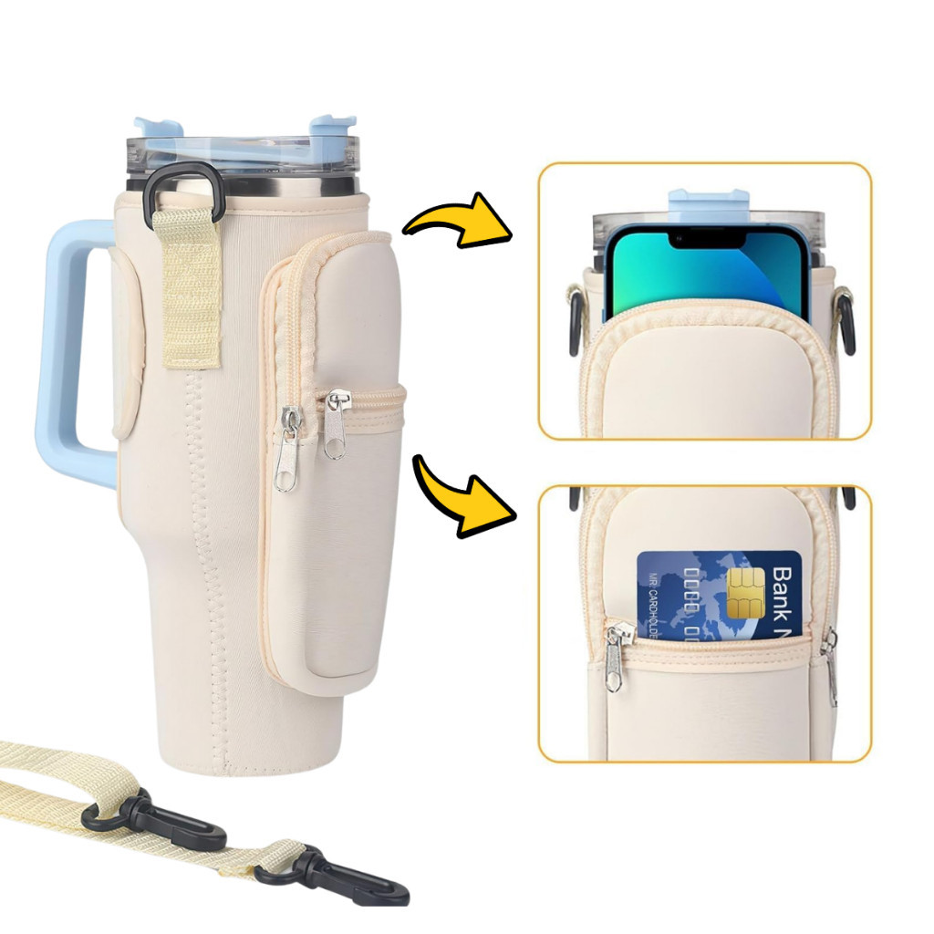 Porta Copo Térmico ou Garrafa de Água 1,2L Bolsa Portátil Impermeável com Alça e Bolso para Celular