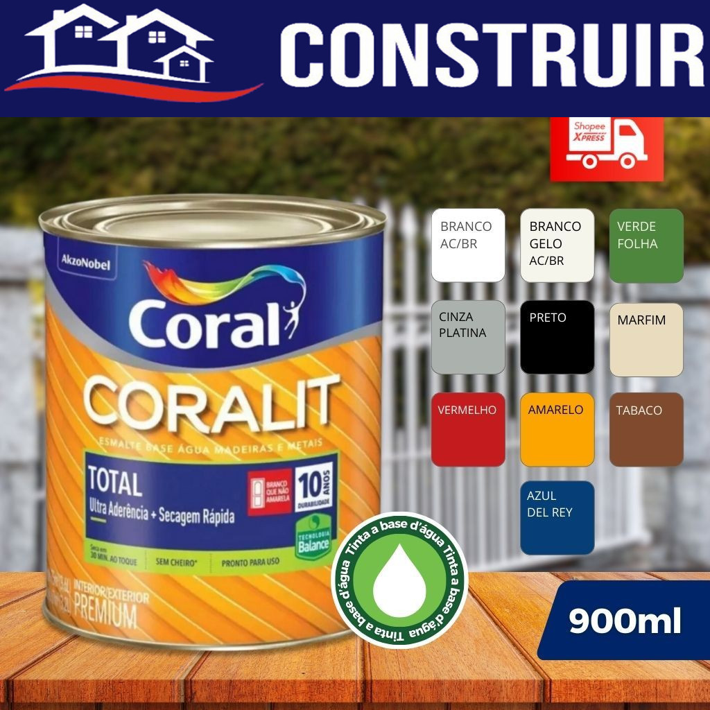 Tinta Esmalte Sintético Madeira Metais 900ml Base Água Coralit Total - Coral Branco Preto Colorido