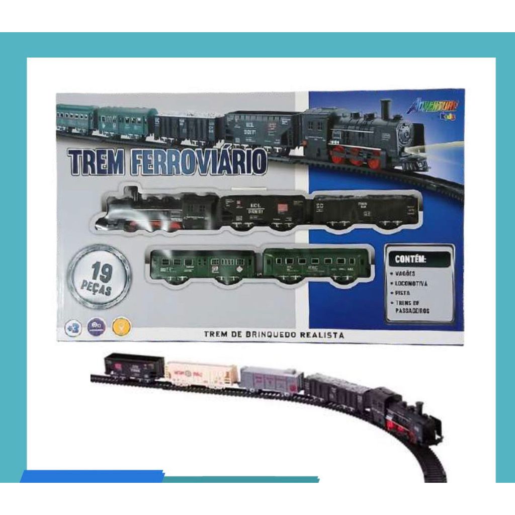 Trem Ferroviário (Locomotiva + 4 Vagoes Com 19 Peças) - Movido a Pilha - ATACADO