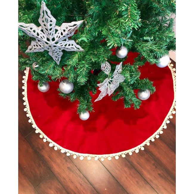 Saia Vermelha De Arvore De Natal Decoração Natalina Base Tapete Decor Festas Noel