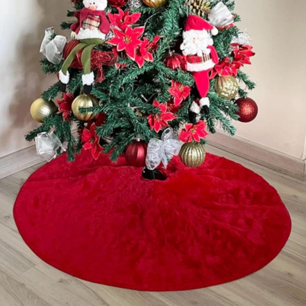 Saia de árvore de natal grande de Veludo Pelo Alto Vermelho 90cm Tapete Luxo e Sofisticação