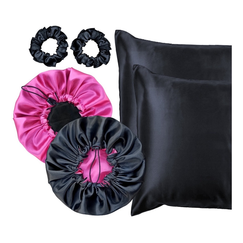Kit completo cetim anti frizz 2 fronhas + 2 touca+ 2 scrunchie