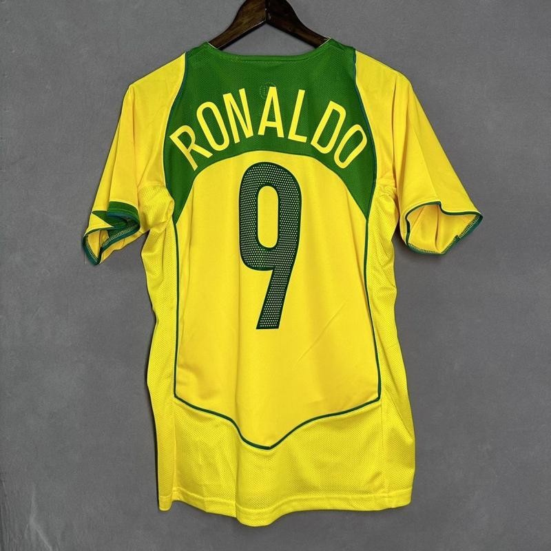 Camisa de futebol Xiaoluo Home da Seleção Nacional de 2004 No. Camisa retrô de manga curta 10 Ronaldinio