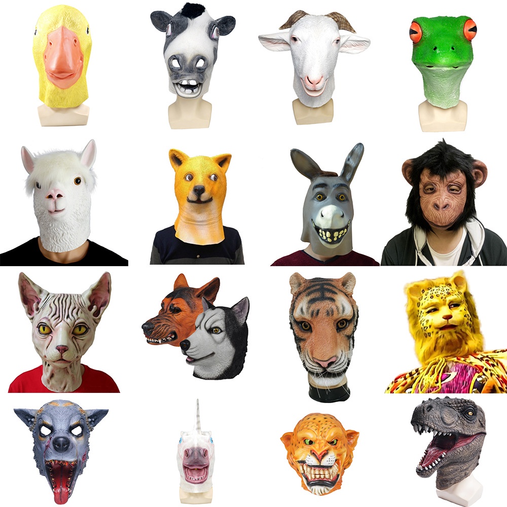 Vários Estilos Máscaras De Halloween Horrorista Cosplay Para Adultos De Fantasia Chapéus De Látex Engraçadas Animais