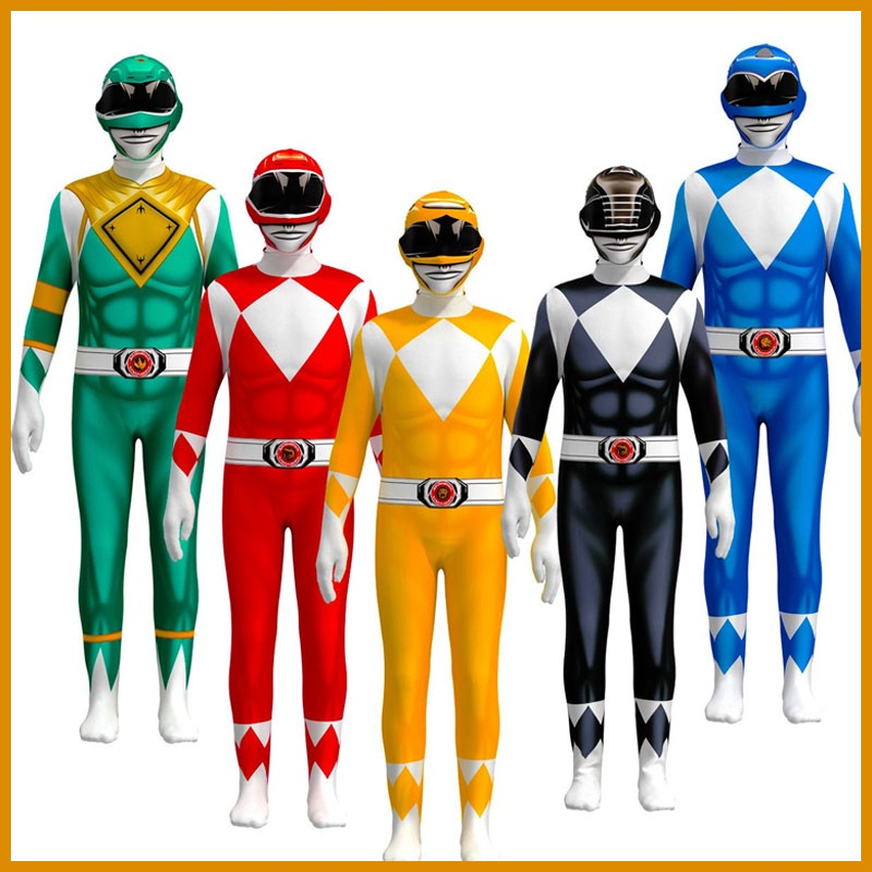 Fantasia Power Rangers Cosplay Traje De Para Crianças Adultas Morpher Mighty Morphin Superhero Máscara De Zentai Halloween