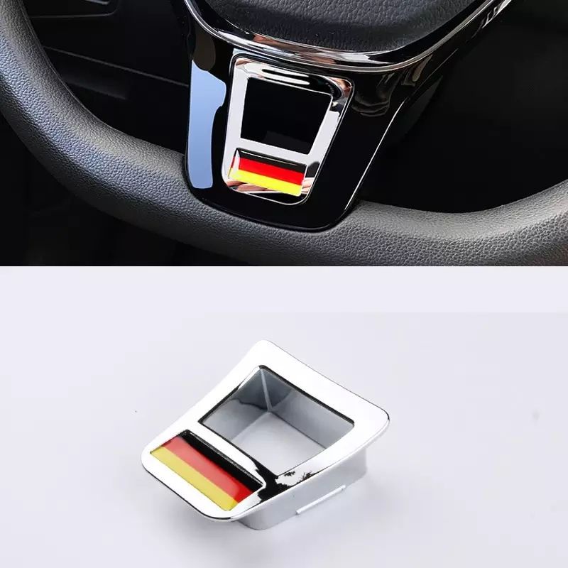 Aplique Moldura Emblema Volante Alemanha R-line Preto E Cromado Vw Jetta Golf Polo Gol Virtus T-Cross