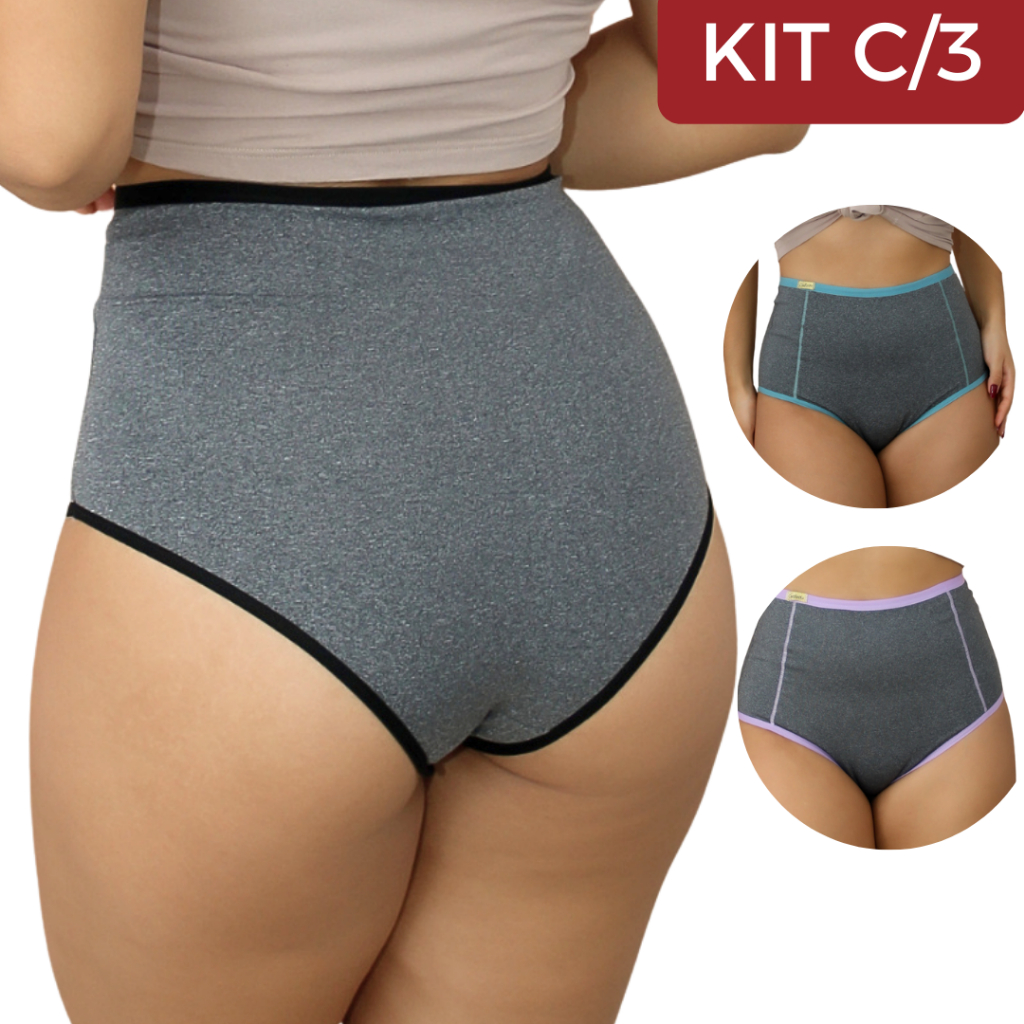 Kit com 3 Calcinhas Cinta Modeladora Cós Alto Confortável Calcinha Plus Size Cós Alto Segura Barriga
