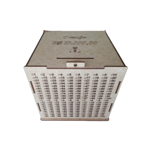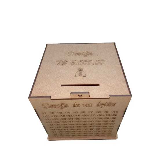 CAIXA DE 10MIL DESAFIO DOS 100 DEPOSITOS EM MDF CRU. GUARDE 10 MIL REAIS COM ESTE COFRE COFRINHO PRESENTE LEMBRANCINHA COFRE DESAFIO JUNTE