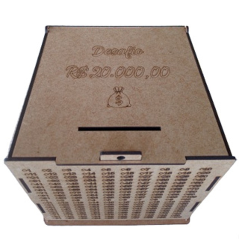 CAIXA DESAFIO 20 MIL REAIS, JUNTE 20 MIL EM 400 DEPOSITOS COM ESTA CAIXA EM MDF CRU.