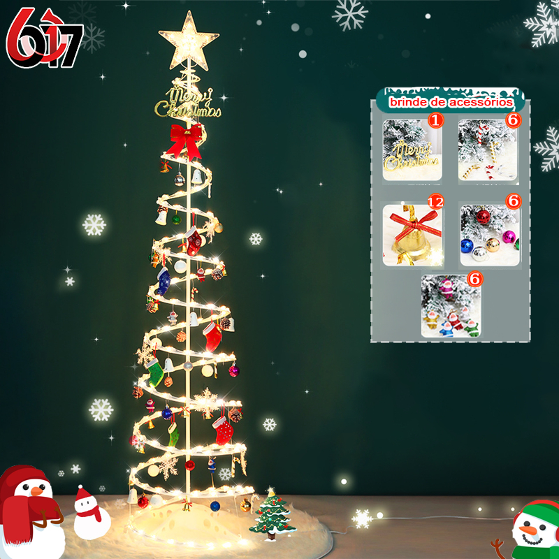 Árvore de Natal espiral LED 1,8 m dobrável 110/220V conjunto Papai Noel com enfeites pendurados N10