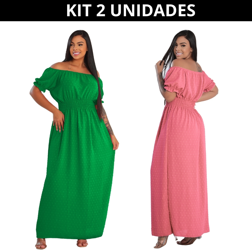 Kit 2 Vestido Feminino Longo Manga Curta Ombro a Ombro Solto Evangélico Gestante Festa