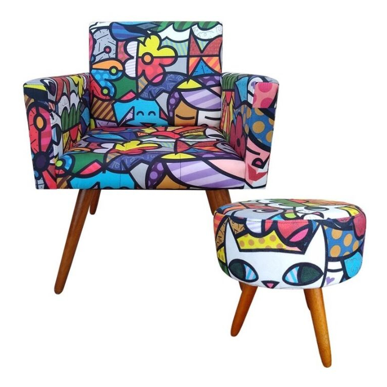 Kit 1 Poltrona Decorativa Nina + Puff ROMERO BRITTO Pés Palito