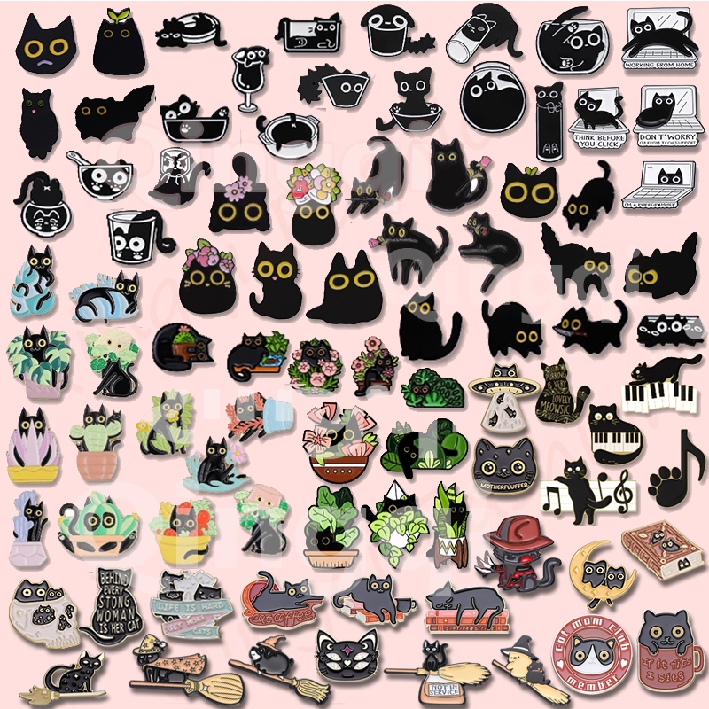 100 Estilos Engraçado Broche Simples De Esmalte De Gato Preto Punk Crachás Lapela Alfinete Desenho Animais Jóias Presentes