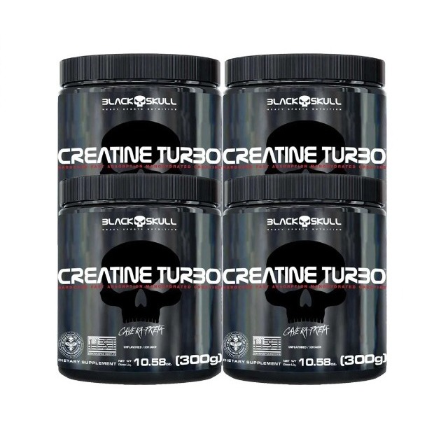 Kit 4 Creatinas Turbo 300g Sem Sabor - Black Skull