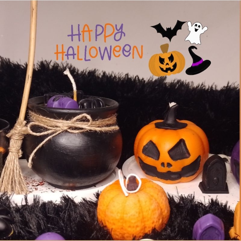 kit vela aromática caldeirão halloween | abóbora | bandeja oval em gesso