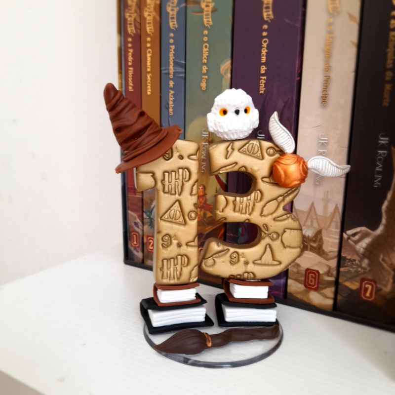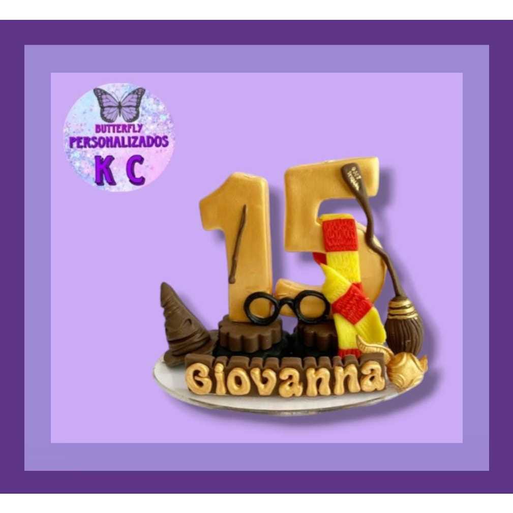 Topo de bolo Harry Potter vela festa de aniversário mesversario biscuit