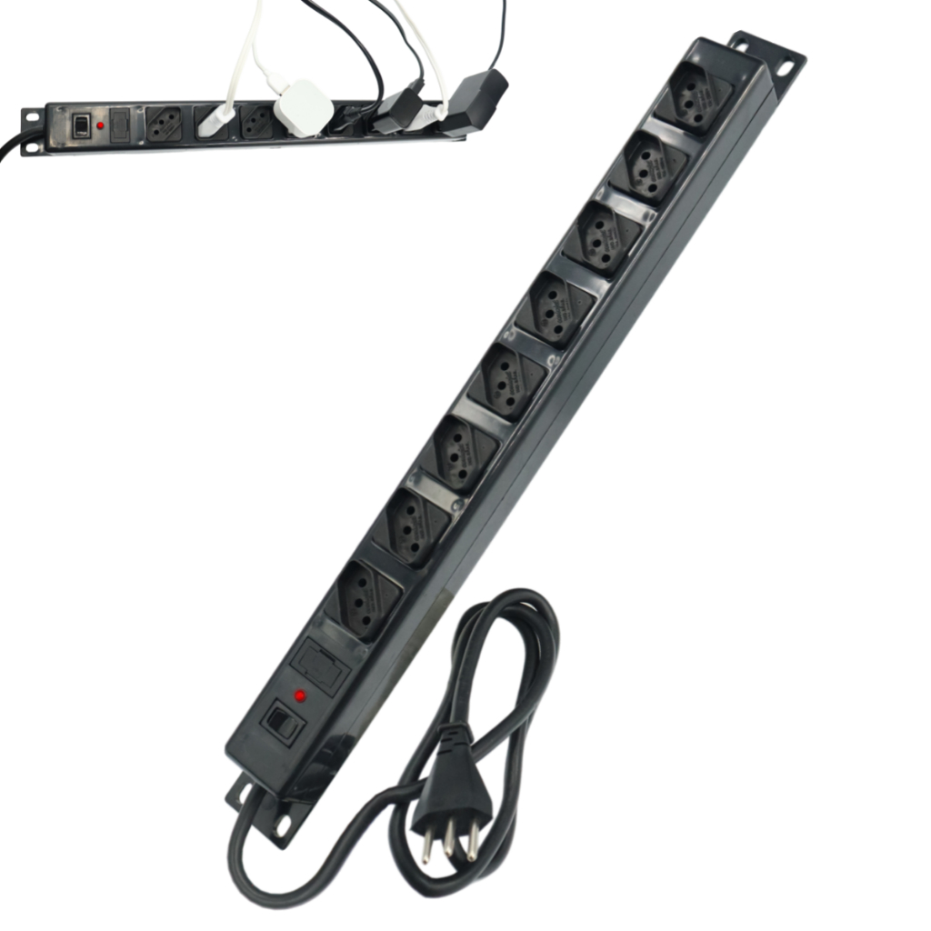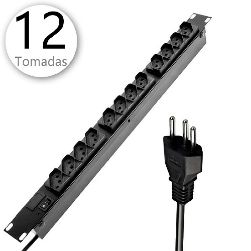 Régua Filtro De Linha Top Rack 12 Tomadas Cftv Telecom padrão 19" Polegadas 10A Rack 19