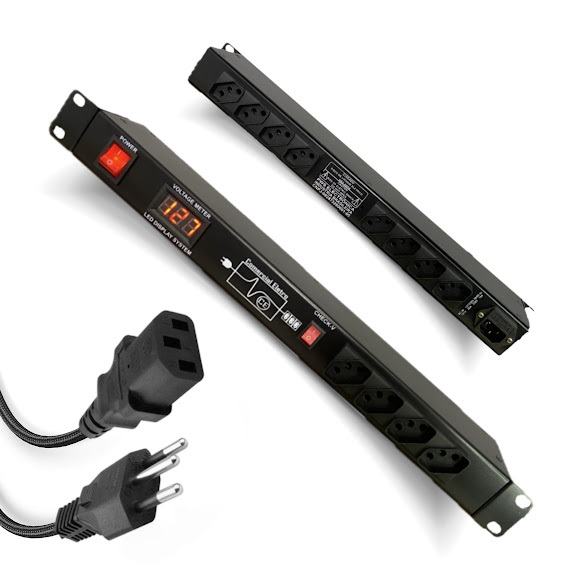 Filtro de Linha Extensão Régua de Energia para Rack 19 com 12 Tomadas Diagonais, 10A e Bivolt Eficiência e Organização para seu Equipamento