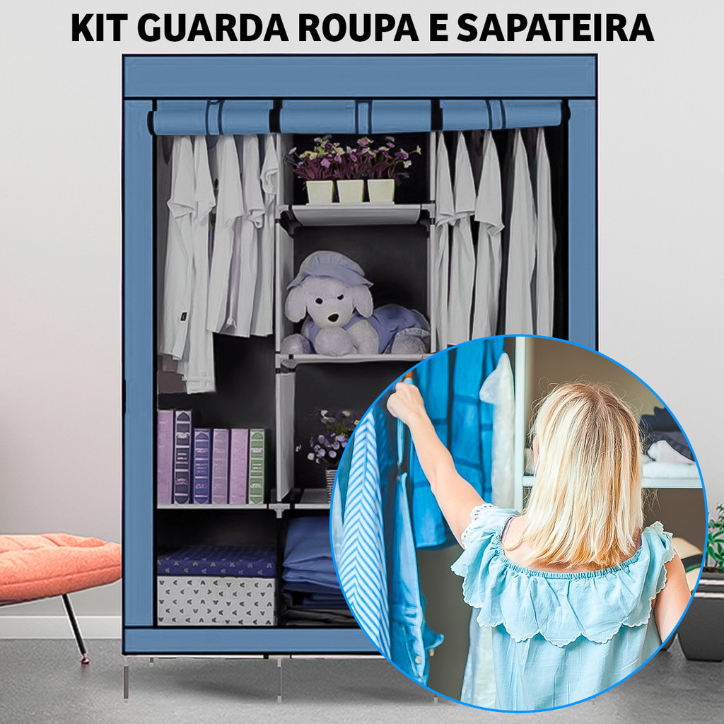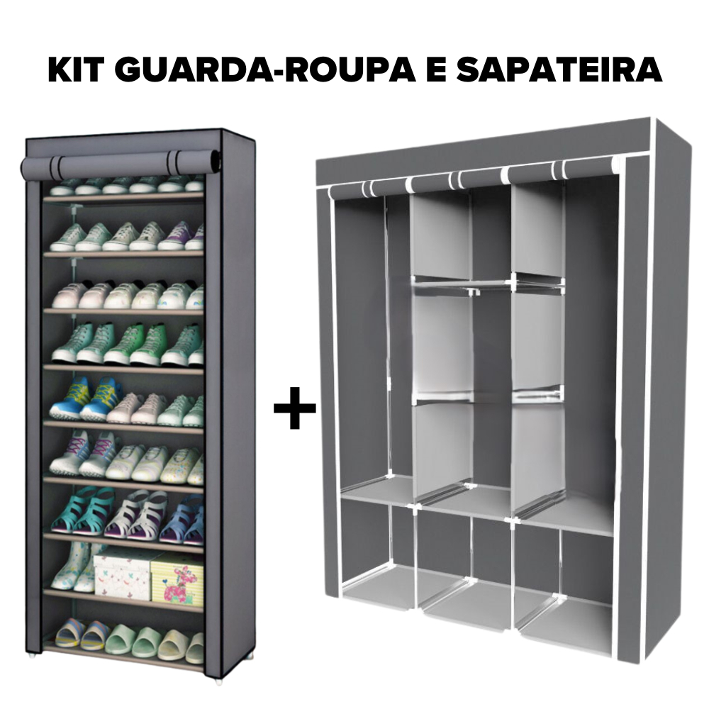 Kit Guarda Roupa E Sapateira Armário Organizador Dobrável