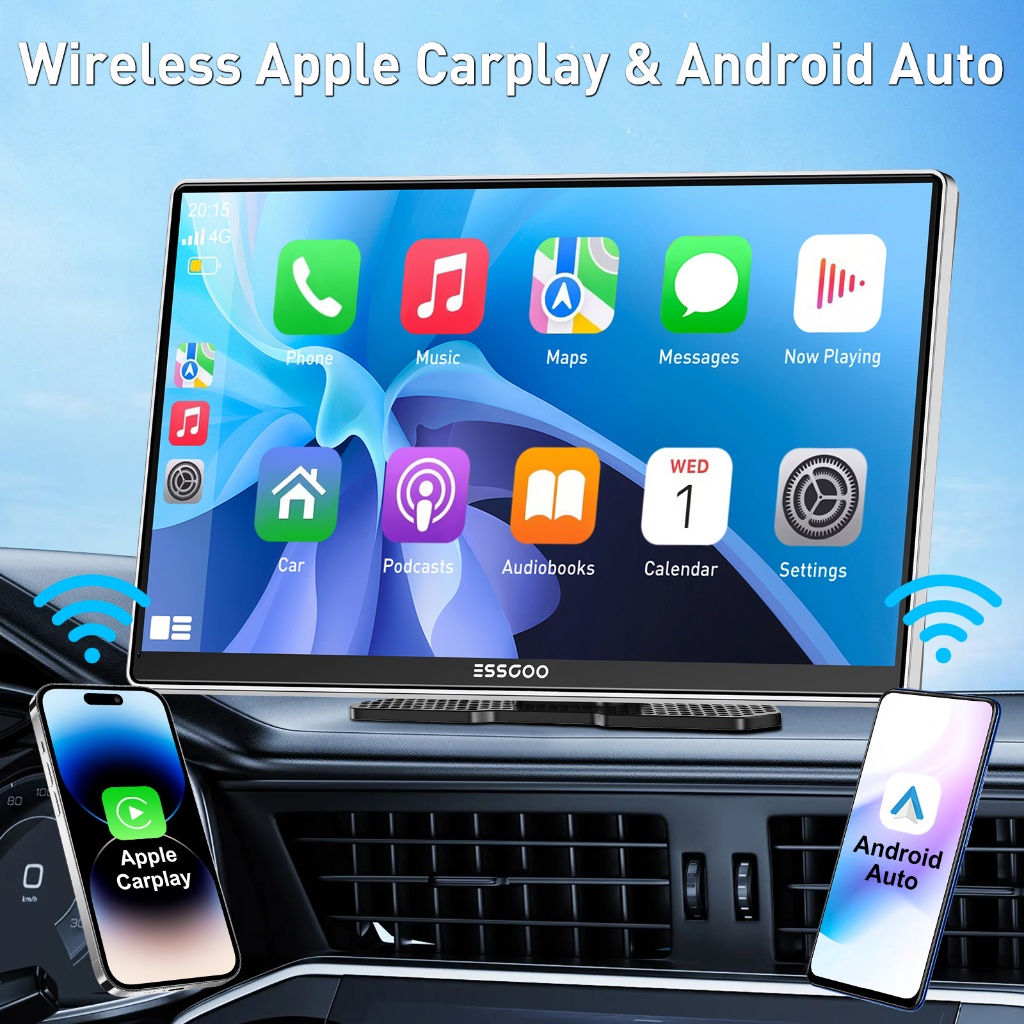 ESSGOO Gravador De Condução De Carro De 9 Polegadas Sem Fio Carplay E Android-auto Mirrorlink Rádio Automotivo Multimídi