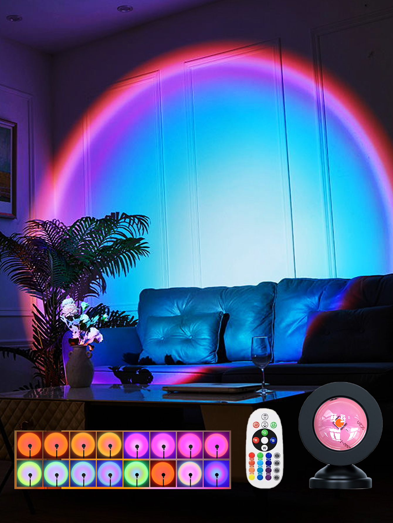 16 Em 1 Lâmpada De Luz Do Pôr Sol Com Luzes De Projetor Remoto Para Sala À Noite Lâmpadas LED Arco-Íris Estéticas