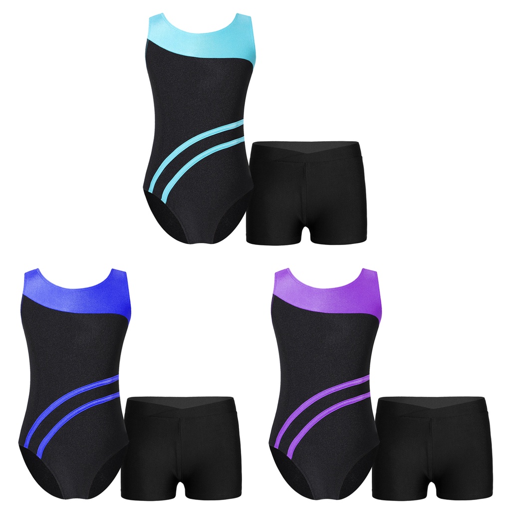 Conjunto De Collant De Ginástica Brilhante Para Meninas Com Shorts Esportivos Roupas De Dança De Balé