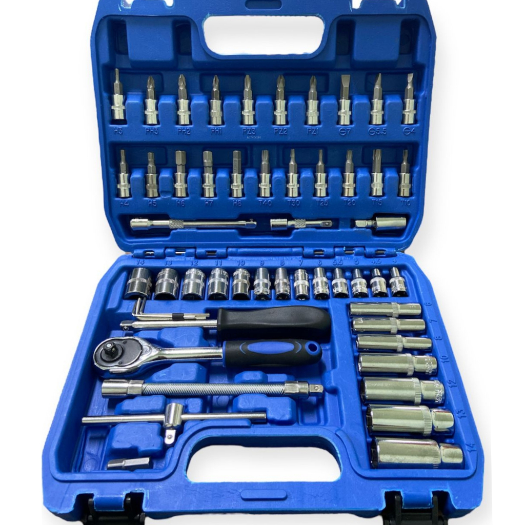 Kit Jogo 53 Peças de Soquetes e Catraca 53 Peças 1/4" com Chaves Allen e Maleta – Aço Cromo Vanádio