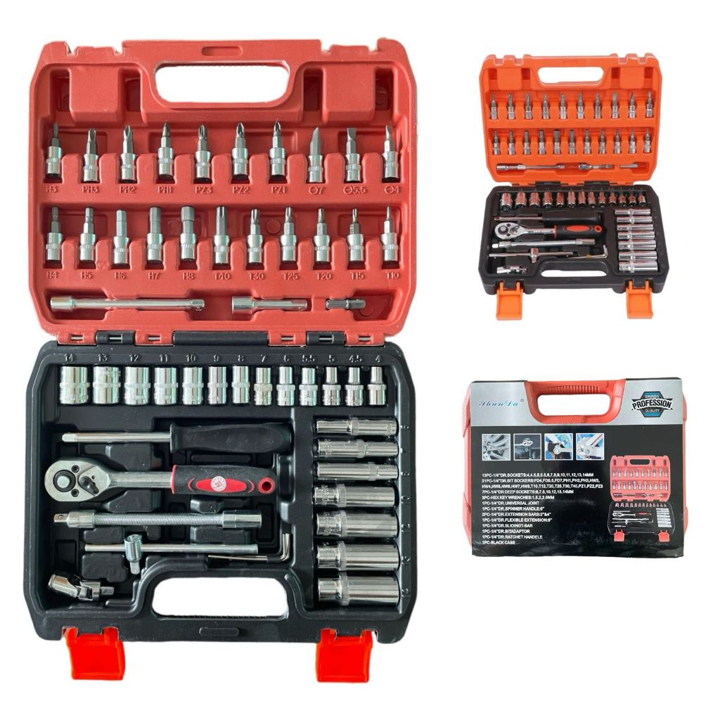 Jogo Completo De Soquete 53 Peças 1/4 Catraca Chave Allen Com Maleta