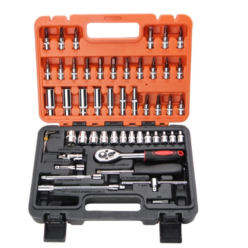 Jogo De Soquete Aço Crv 1/4 Catraca Chave Maleta 53 e46 Pçs Mecânico Manutenção Chave allen