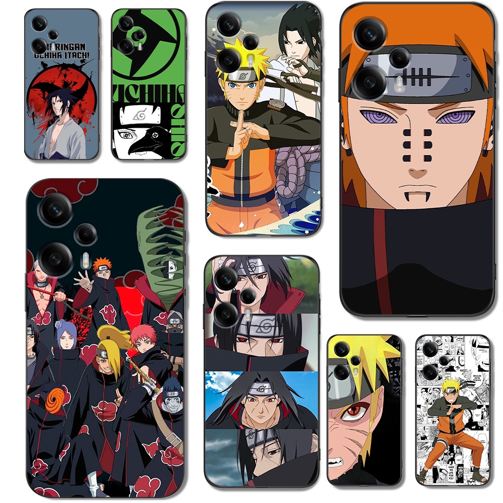 Estojo Para Xiaomi POCO F5 5G REDMI Nota 12 TURBO Silicone Phone Back Cover Preto Naruto anime Caracteres