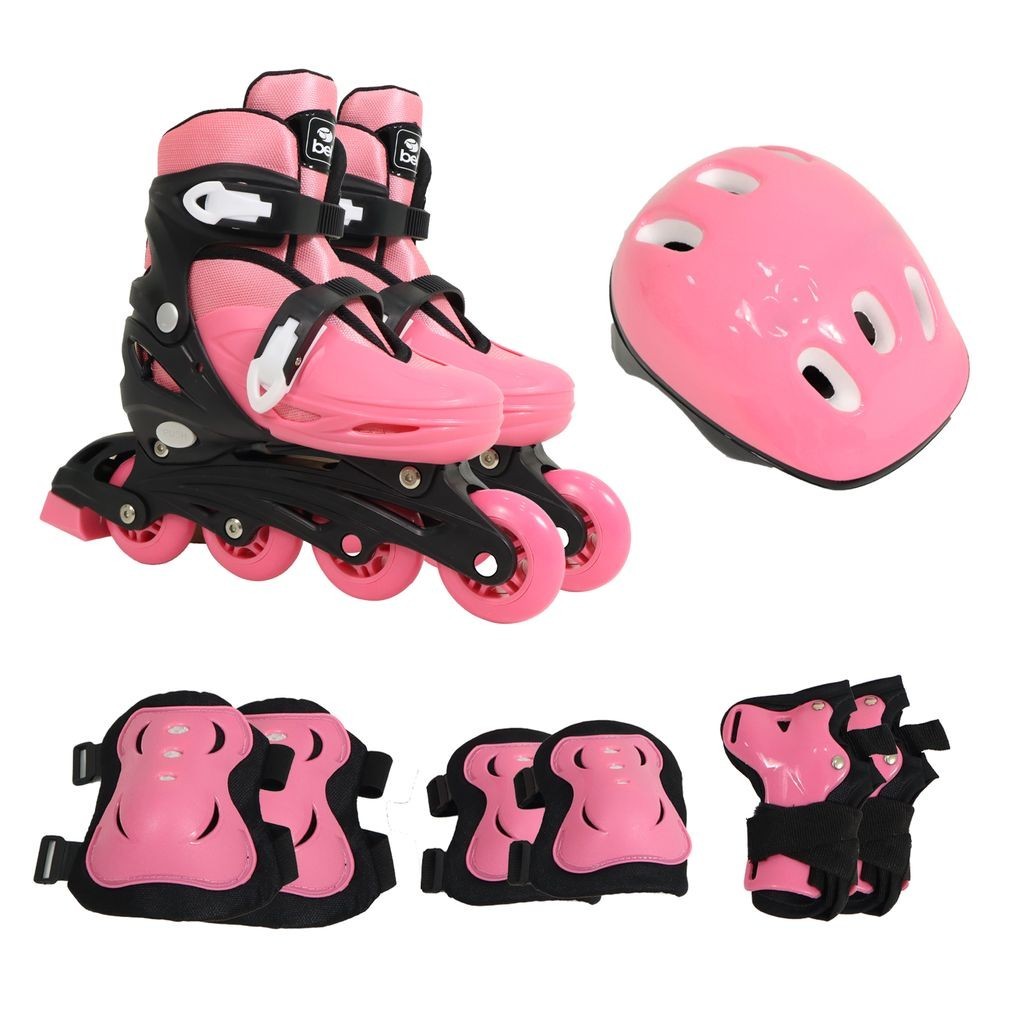 Kit Patins Inline Radical com Luva, Capacete, Joelheira e Cotoveleira Rosa G (37-40) Bel