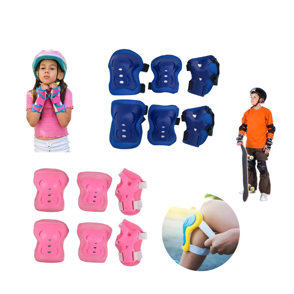 Kit 6 Peças de Proteção Completo para Bicicleta Skate Patinete Patins Escalada Luva Cotoveleira Joelheira Menino Menina
