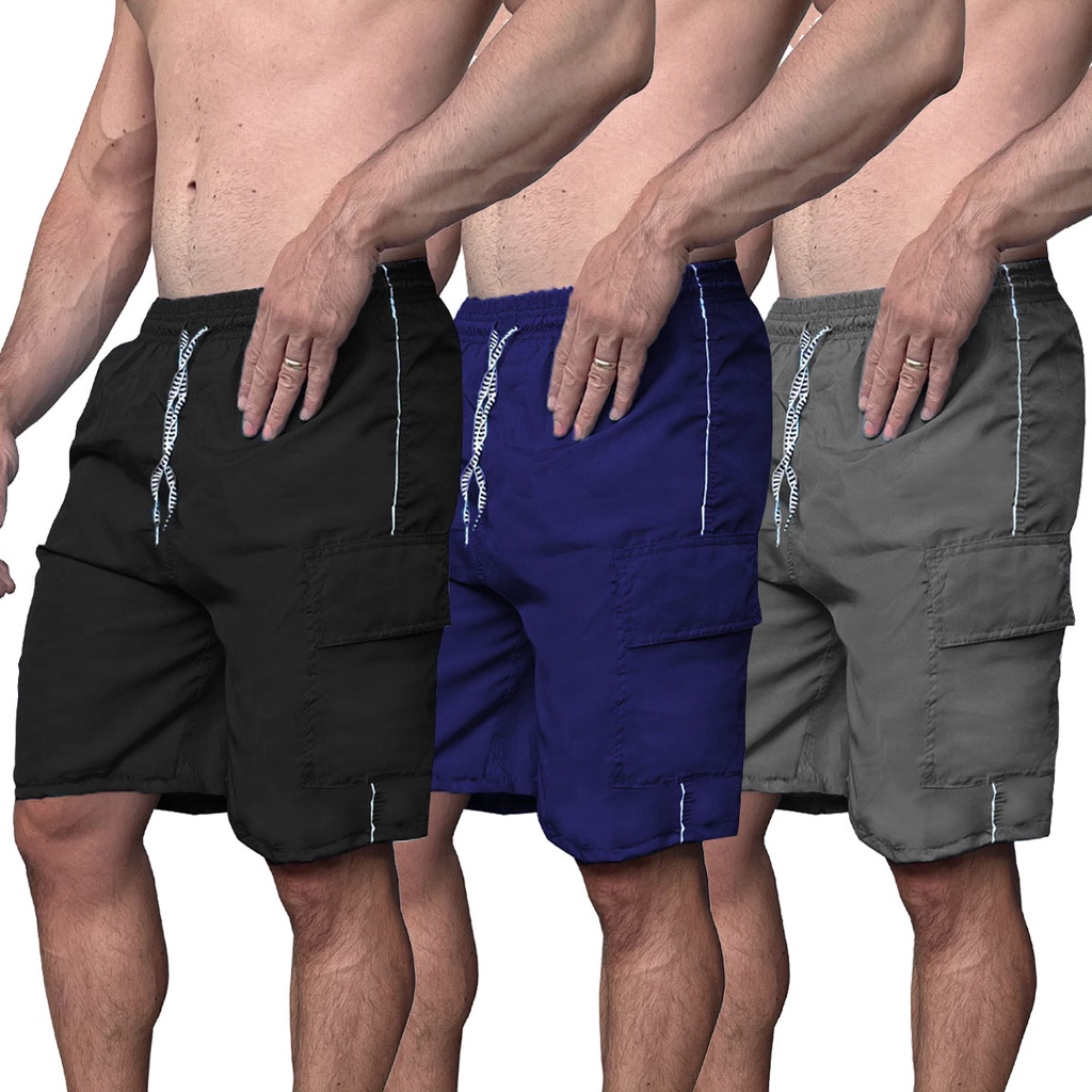 Kit 3 Bermudas Tactel Masculina Cargo Academia Corrida Musculação 3 Bolsos
