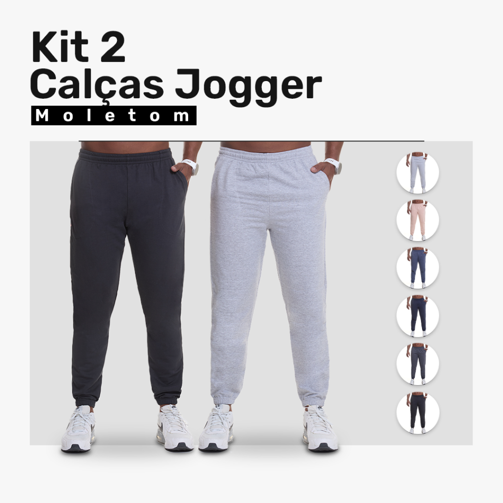 Kit 2 Calças Jogger Moletom Masculina Premium, Bolsos Laterais para Celular - Conforto e Estilo, Moda Casual e Esportiva