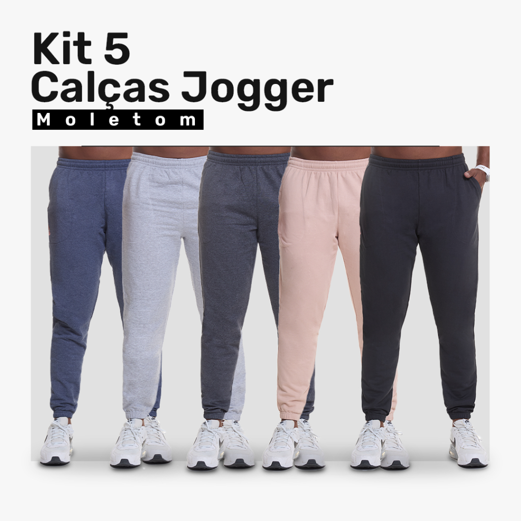 Kit 5 Calças Jogger Moletom Masculina Premium, Bolsos Laterais para Celular - Conforto e Estilo, Moda Casual e Esportiva