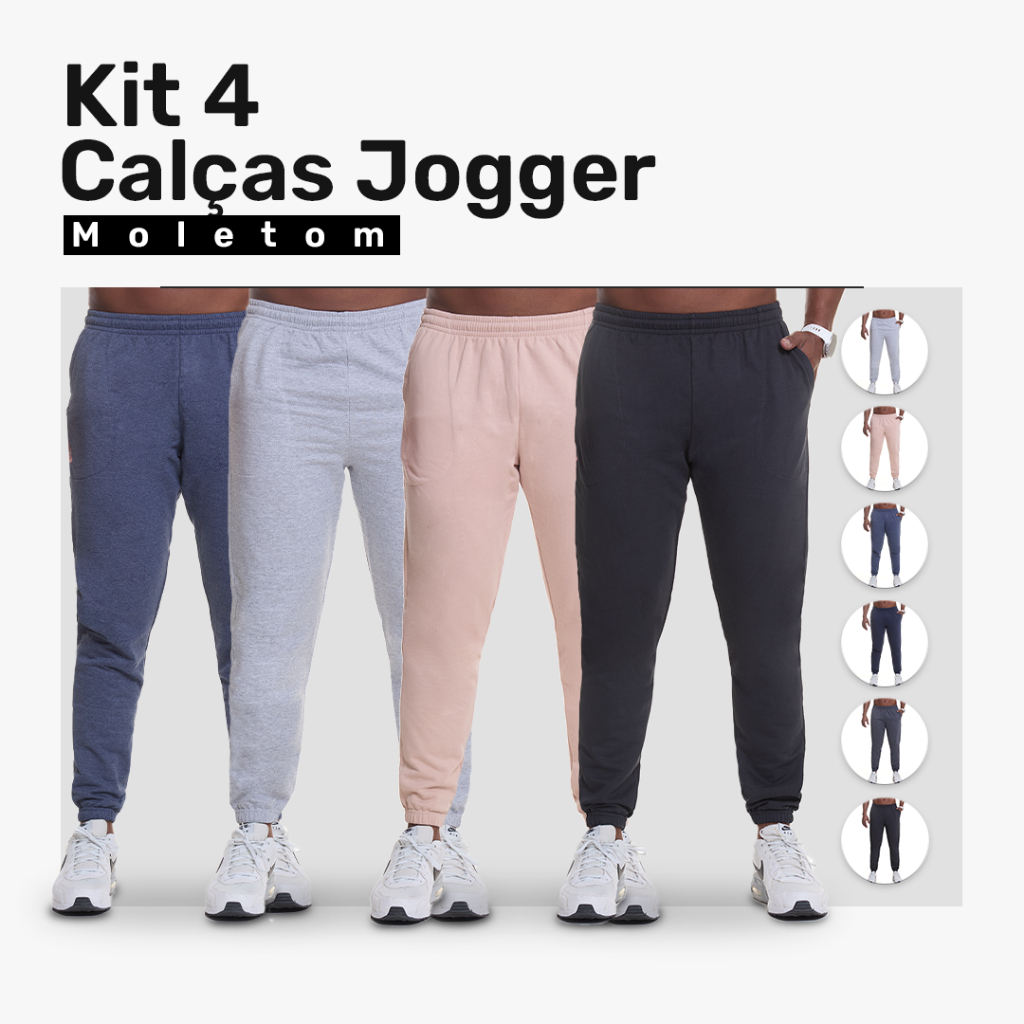 Kit 4 Calças Jogger Moletom Masculina Premium, Bolsos Laterais para Celular - Conforto e Estilo, Moda Casual e Esportiva