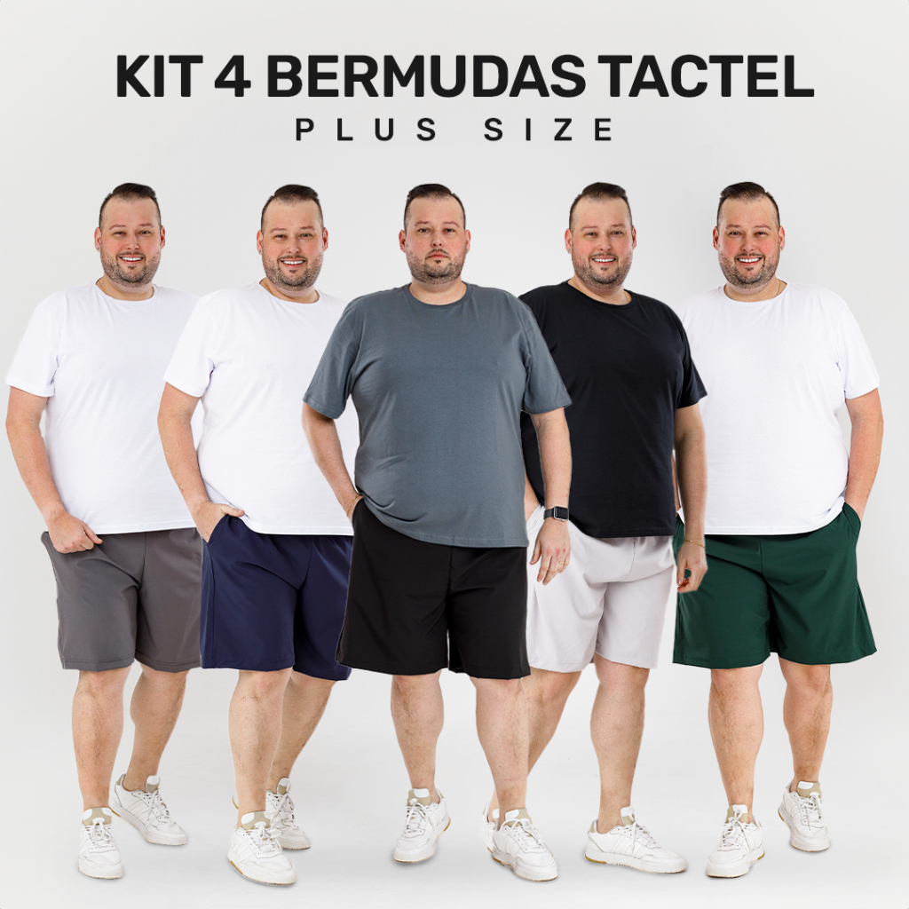Kit 4 Bermudas Tactel Plus Size Masculina, Bolsos Laterais para Celular-Short Academia Masculino,Moda Casual e Esportiva