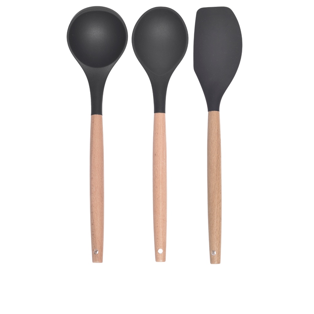 Kit 3 Peças Utensílios Silicone Bambu Concha Colher Espátula