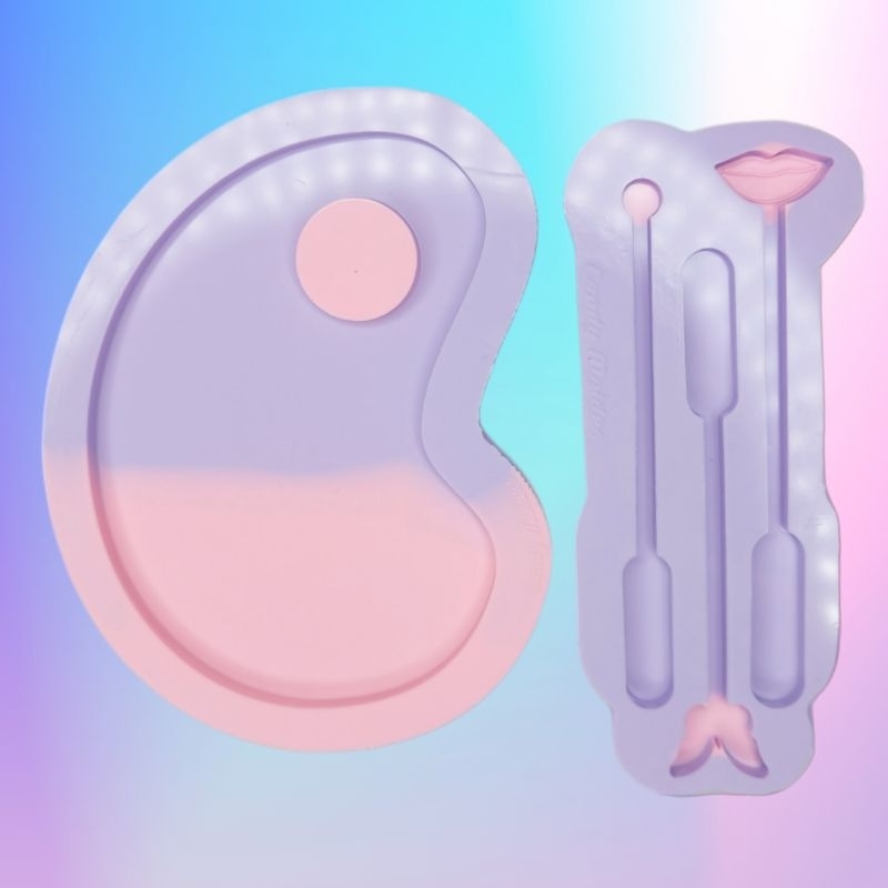 Kit molde de silicone plaquinha make maquiagem + espátula com 3 cavidades plaquinha unha resina epoxi artesanato