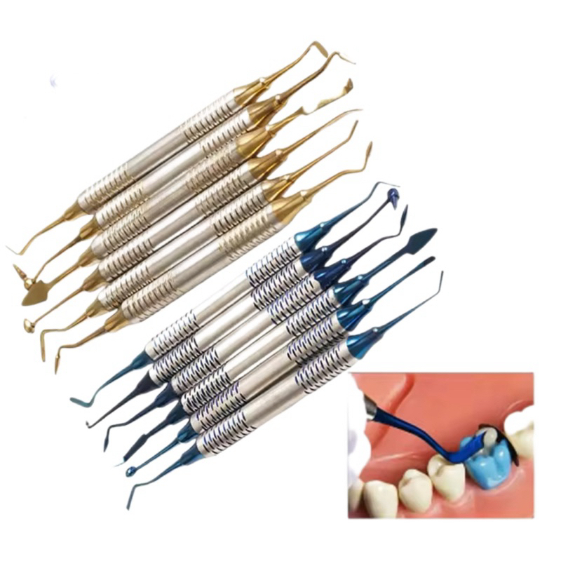 Kit De Espátula Para Restauração Resina Azul ,Dourado Com 6 Unidades