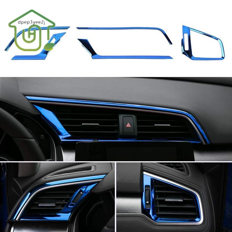 Autocolante De Controle Central De Saída De Ar Decoração De Tampa De Aço Inoxidável Para O 10o Gen Honda Civic 2019 2018 2017 2016 , Azul